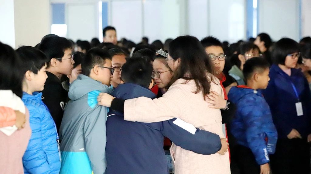 最后的感恩互动环节,会场上一遍又一遍地回响着同学们“老师,你们辛苦了!”“爸爸妈妈,我爱你们!”的真情呼告。老师与家长们也真情流露,与孩子们紧紧拥抱在一起。