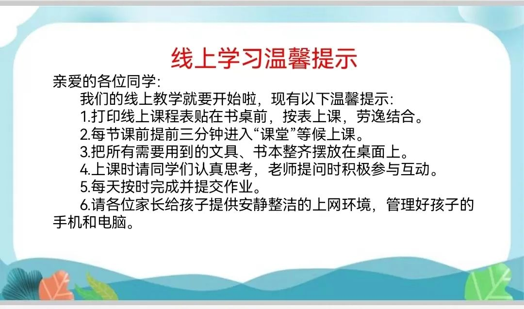 教有质量,学有收获。线上教学的第一天,老师们在“云”端坚守教学一线,同学们于方寸之间踏实学习、砥砺前行。此刻的洋思人共同积蓄成长的力量,播下希望的种子,期待着回到教室的那一天。