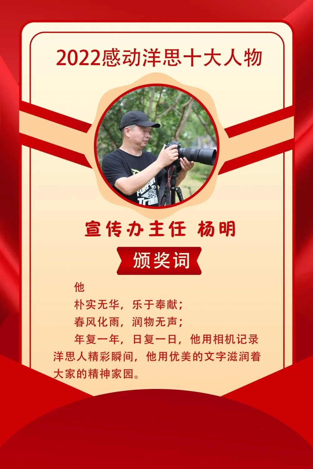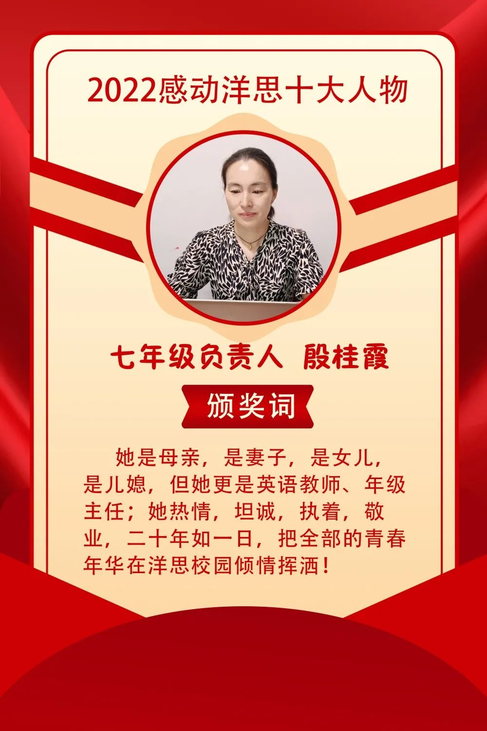 时维九月,序属三秋,正是天清气爽、谷穗飘香的丰收季。今年的9月10日是我国第38个教师节,也是中国的传统佳节——中秋节,为迎接党的二十大,培根铸魂育新人,展现我校教师爱党爱国、立德树人、自信自强的精神风貌,9月9日下午,洋思中学教育集团隆重举行“感动洋思十大人物”颁奖仪式。洋思中学教育集团领导班子所有成员、洋思中学全体老师、部分优秀学生代表和感动洋思十大人物的家属代表出席了颁奖仪式。师生代表还给大家带来了独唱和诗歌朗诵等节目,各班学生及家长通过“今日洋思”视频号收看了颁奖仪式的实况直播。
