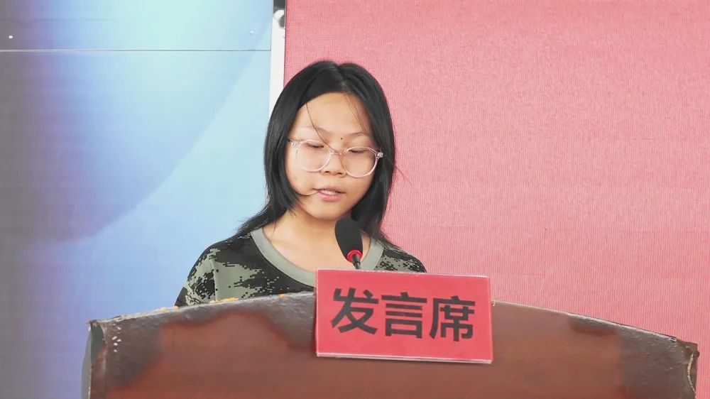 七(6)班殷子云同学代表全体学生发⾔,表示会在军训中,发扬不怕苦、不怕累的精神,锻炼⾝体,磨练意志,保证完成军训任务。