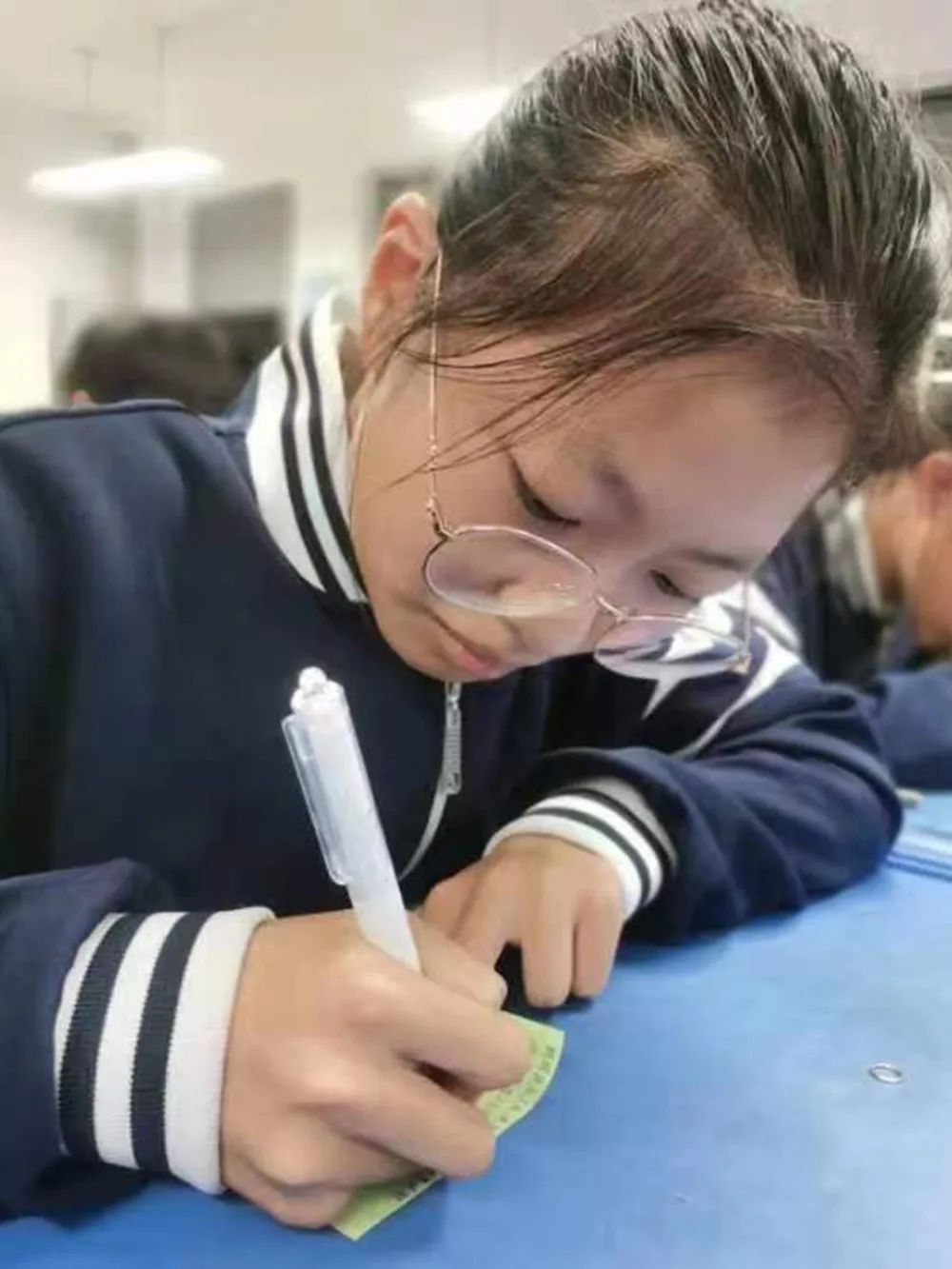 接着,班主任发给每一位同学一张小小的心愿纸,让每个孩子在心愿纸上写上自己最喜欢的一句爱国名言,把初中三年的目标写在名言之下,然后卷起心愿纸,写上编号、姓名,再一起高举心愿纸宣誓“立志报国,筑梦未来,给自己定一个小目标,一步一步,实现大梦想!”最后,班主任点亮心愿瓶,学生依次把心愿纸放进心愿瓶中。班主任封瓶,交学校收藏。