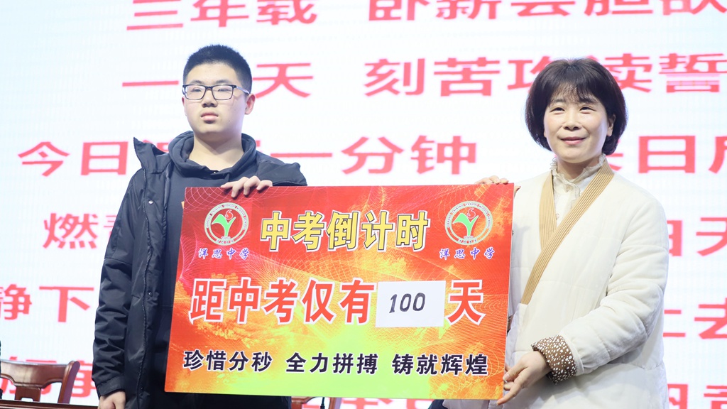 最后,由学生代表丁炳珲同学领誓,初三同学集体宣誓:“百日短暂,绝不彷徨。坚定目标,立足课堂。夯实基础,避短扬长。查漏补缺,重点盯防。奋战百日,笑傲考场。如火六月,誓创辉煌。”铮铮誓言,嘹亮激越,激发每一个学子迎接中考的信心和斗志。
